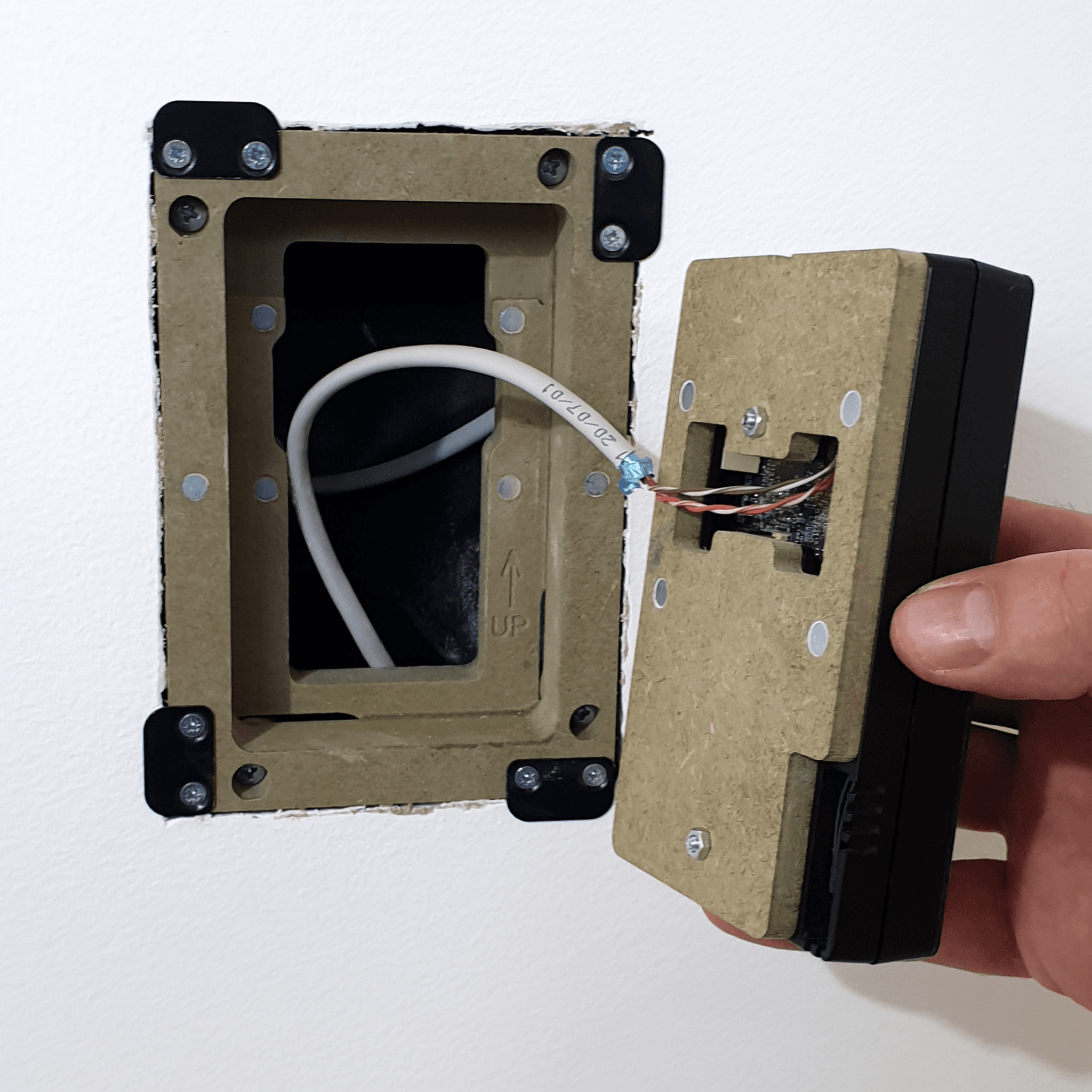 The WS RETROFIT FOR CLI-W200 is an adapter for in-wall nearly flush retrofit installation of a CLI-W200 thermostat. The WS RETROFIT FOR SAVANT THERMOSTAT CLI-W200 firmly mounts the CLI-W200 thermostat while allowing easy insertion, removal and operation.